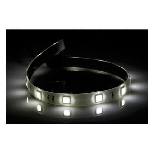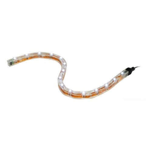 Barra luminosa flessibile autoadesiva, impermeabile, provvista di microconnettore terminale che permette di collegarle in serie e di cavetto di collegamento con microconnettore.