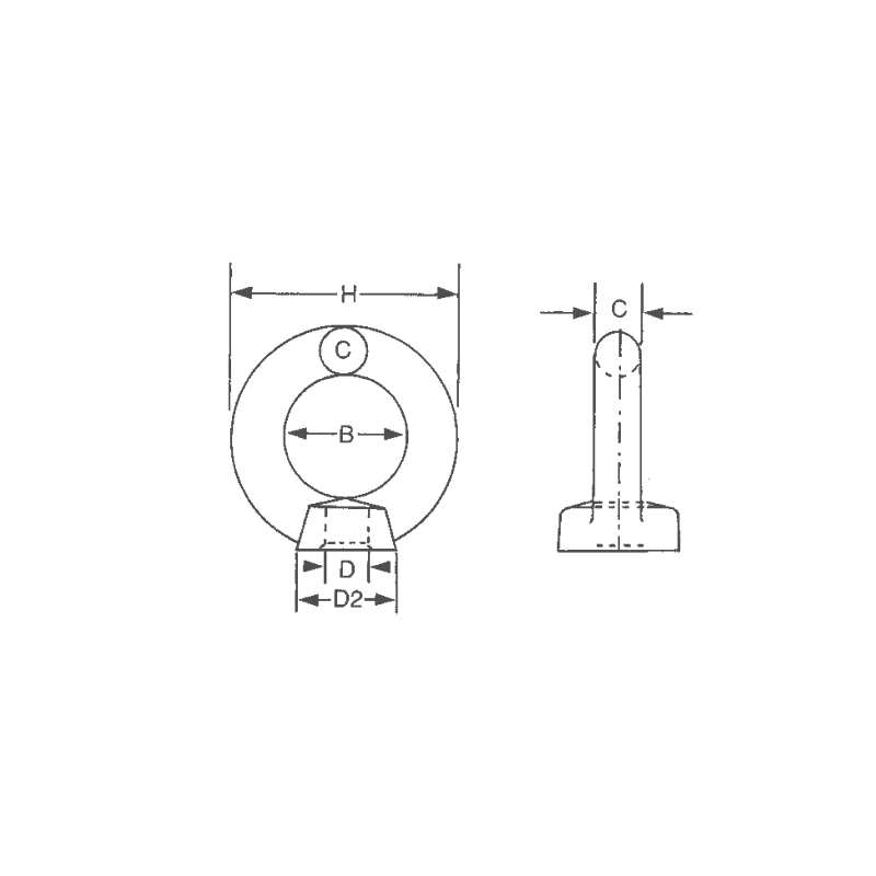Golfare femmina ad occhio circolare in acciaio Inox AISI 316 con foro filettato.