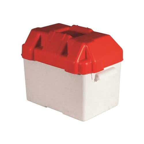 CASSETTA PORTABATTERIA in resistente poliuretano, provvista di cinghie di chiusura. Cassetta per impianto elettrico barca e camper.