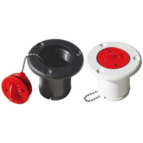 Tappo imbarco carburante in plastica. Apertura con tappo a vite e chiave a scomparsa (tipo farfalla). Dotato di catenella interna salvatappo.