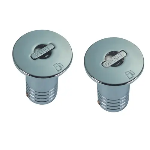 Tappo imbarco carburante in ottone cromato con levetta a scomparsa e copriviti.