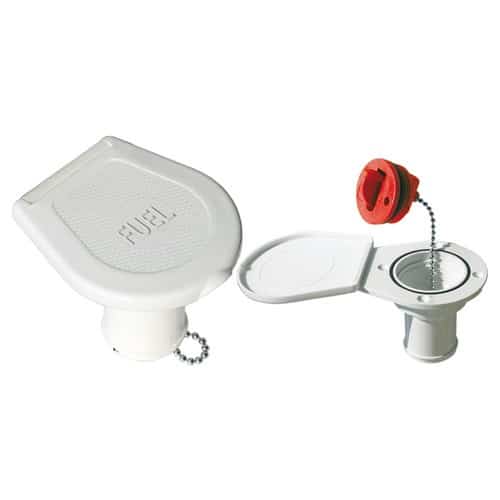 Tappo imbarco carburante in plastica con portello e chiave a scomparsa (tipo farfalla). Dotato di catenella interna salvatappo.