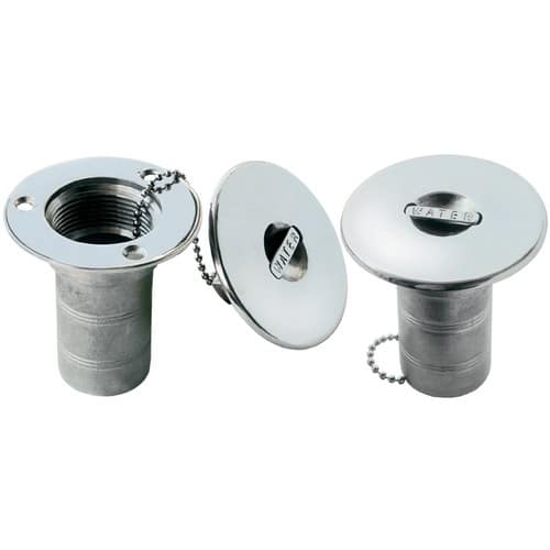 Tappo imbarco acqua in ACCIAIO INOX con levetta a scomparsa, catenella salvatappo ed anello di tenuta.