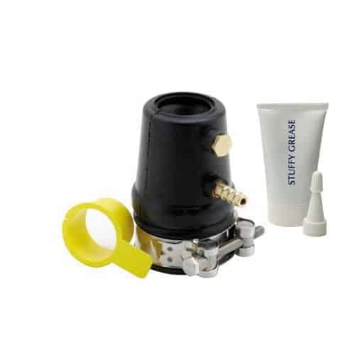 Teste astuccio a guarnizione per assi portaelica metrici con portagomma per il raffreddamento e valvola a vite per la lubrificazione, complete di istruzioni e lubrificante. Giunto elica astuccio.