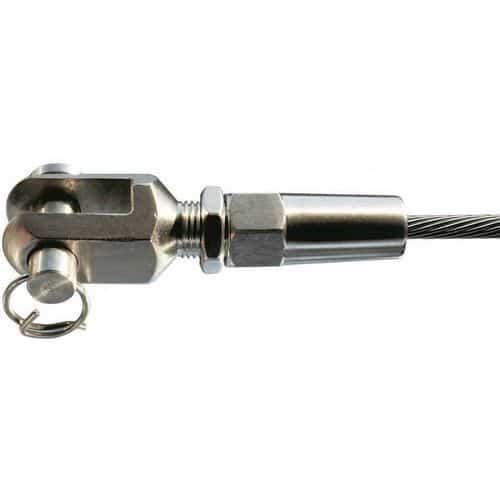 Terminali rapidi in acciaio inox AISI 316 con forcella con tenuta eccezionale pari al carico di rottura del cavo. Facili da montare, basta inserire il cavo d’acciaio nel terminale e il mandrino lo cattura automaticamente.