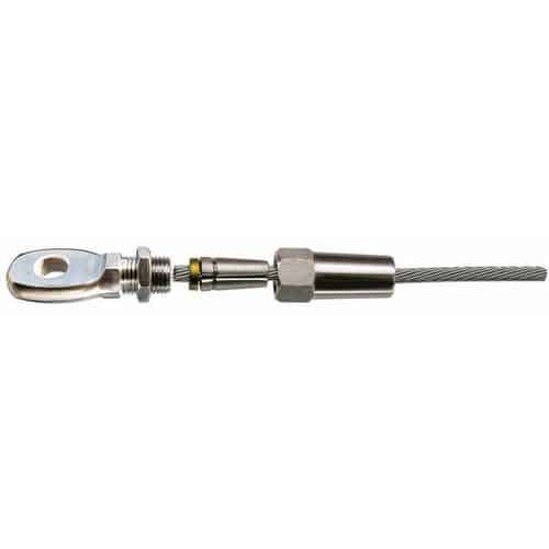 Terminali rapidi in acciaio inox AISI 316 con occhio con tenuta eccezionale pari al carico di rottura del cavo.Facili da montare, basta inserire il cavo d’acciaio nel terminale e il mandrino lo cattura automaticamente.