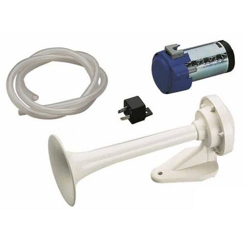 Tromba elettropneumatica con corpo in Ottone verniciato bianco, cornetto in Tecnopolimero verniciato bianco completa di compressore, tubazioni e attacchi.