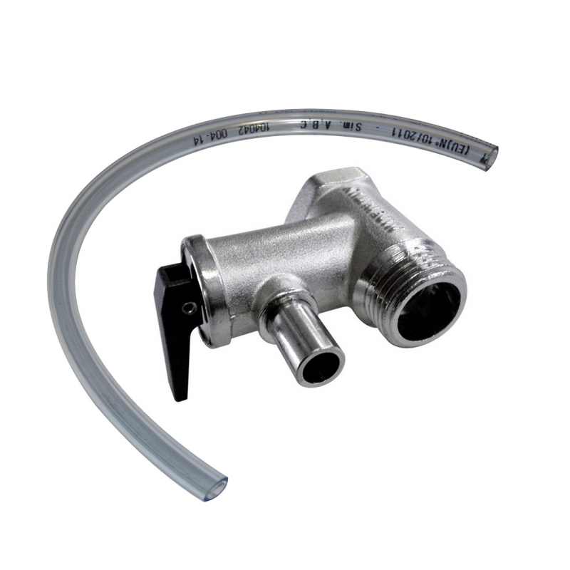 Valvola di sicurezza tarata a 6 Bar (600Kpa). Evita il danneggiamento da sovrapressione dei Boiler permettendo la fuoriuscita del’acqua fino al raggiungimento della pressione massima consentita. Per Boiler modello BX e B3