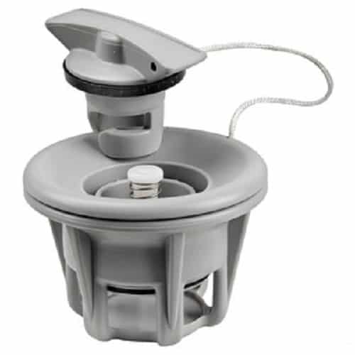 Valvola modello universale con funzionamento PUSH-PUSH, fabbrcata in resina acetalica con doppia formazione di tenuta. Si monta a vite senza colla.