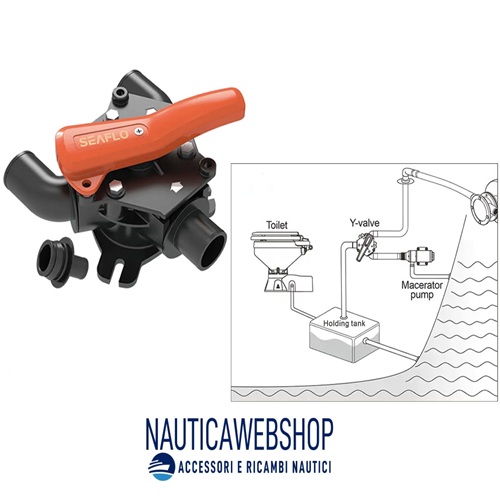 Valvola SAEFLO con maniglia ergonomica che permette lo scarico delle acque nere in mare o nel serbatoio con blocco di sicurezza della leva. Articolo ultilizzato per impianti sanitari barca e camper.
