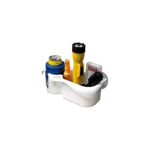 Vano portaoggetti e portalattine in pvc bianco con istallazione tramite le ventose in dotazione.