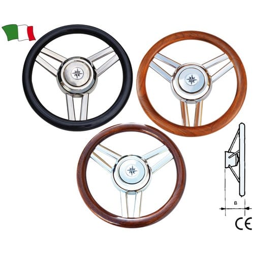 Volanti modello “GENIUS” a tre razze in ACCIAIO INOX ed impugnatura in poliuretano, completi di mozzo universale.