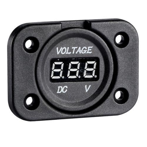 Voltometro digitale 8/32V da incasso di colore nero completo di pannello frontale.