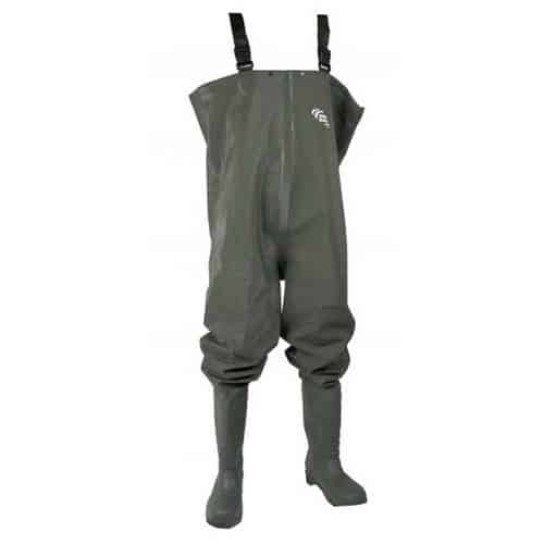 Waders mordido e confortevole con stivaletto in pvc e tasca interna e spalline larghe regolabili da clip.