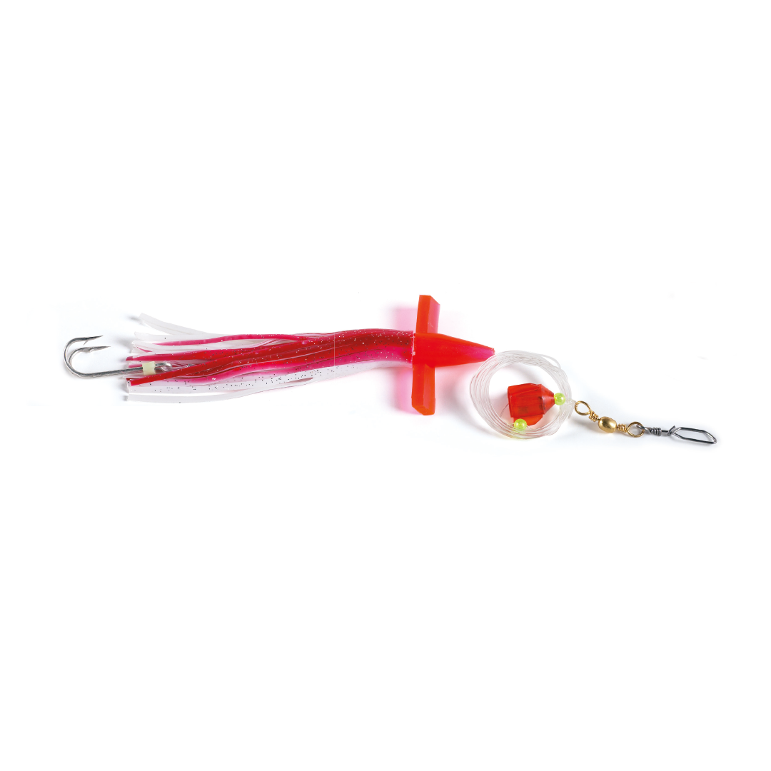Artificiale per la traina di superficie, costituito da un montaggio su lenza, testa planante e octopus, fissati su due ami. Ottimo per la traina degli alletterati.